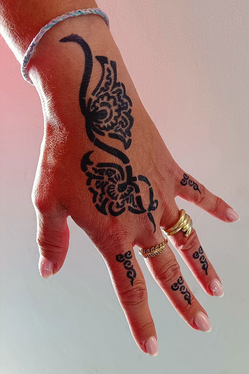 Comme un accessoire de mode, le tatouage éphémère au jagwa se conjugue avec les tenues, la saison et la mode. Au fil des humeurs et des envies, on peut l'adapter et changer d'avis !
